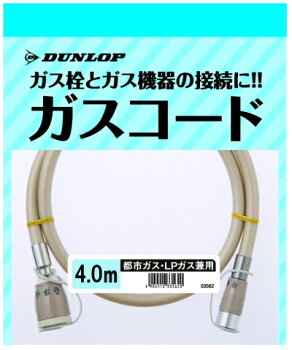 ダンロップ製 専用ガスコード 4m 都市ガス/プロパンガス兼用(φ7) ファンヒーター・ガス炊飯器・衣類乾燥機・専用接続機器用 *専用ガスホース/接続ホース/(RC/RR/GFH/RDT等)*